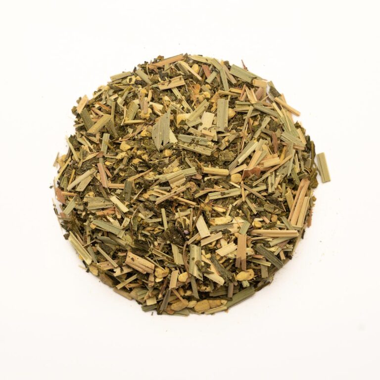 Ingredients: Green tea Sencha (31%), ginger (31%), lemongrass (29%), peppermint (8%) from our garden.