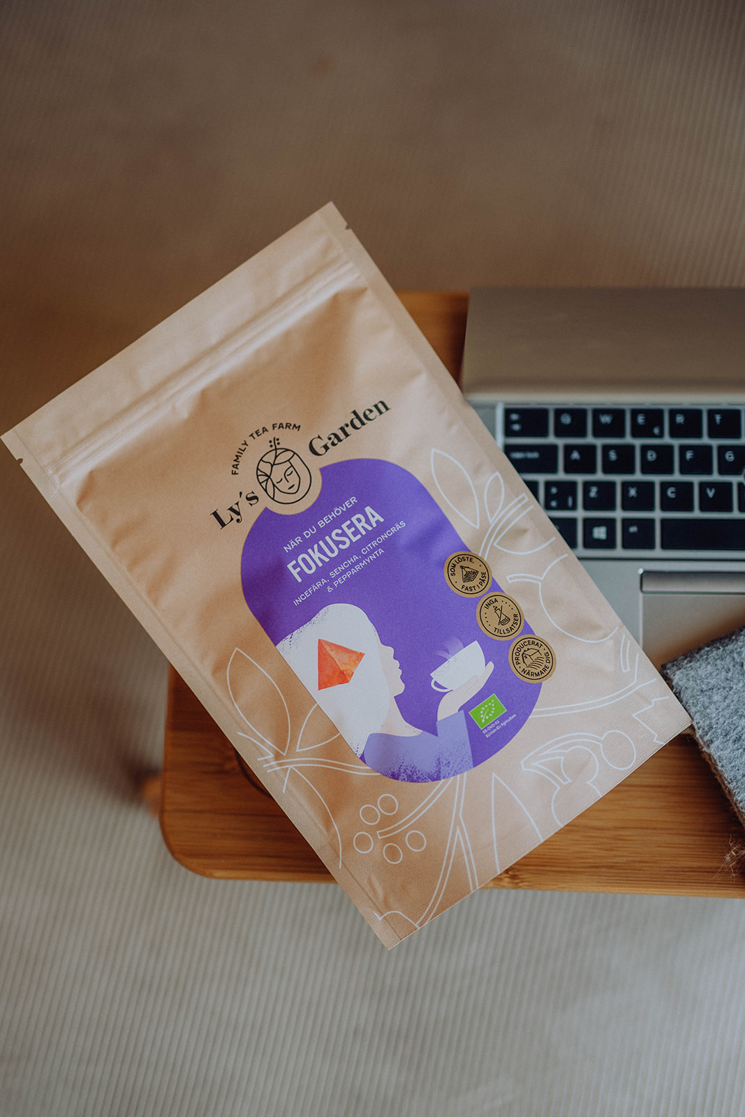 Ingredienser: Ekologisk Sencha (gröntte) (31%), ekologisk ingefära (31%), ekolo-giskt citrongräs (29%), ekologisk pepparmynta (10%).