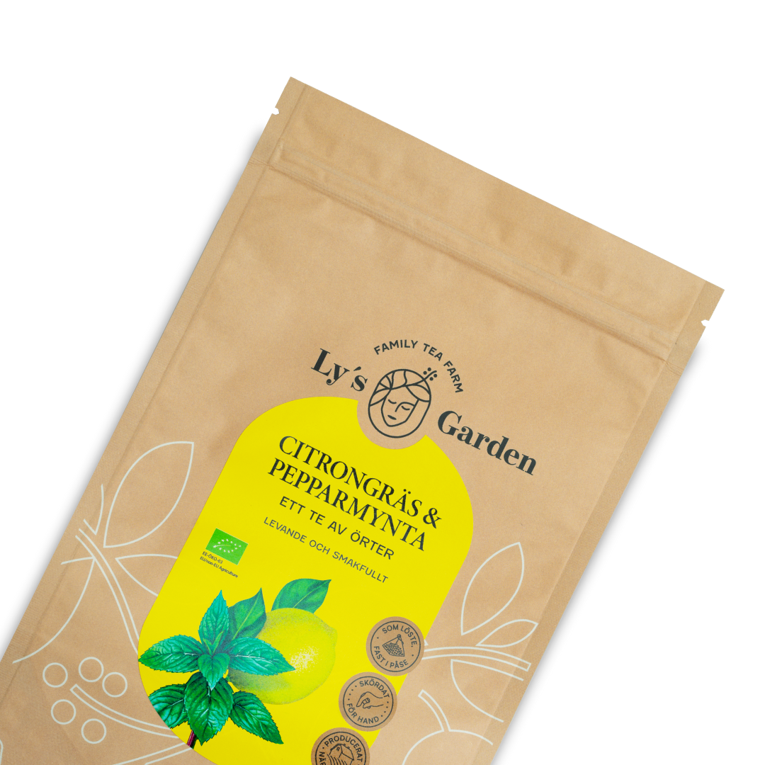 Ett uppfriskande ekologiskt örtte med citrongräs och pepparmynta. Handplockat te från vår gård i EstlandFriskt och uppfriskande ekologiskt örtte med citrongräs och pepparmynta. Familjepack med 50 pyramidpåsar så du alltid är redo för din favoritkopp.